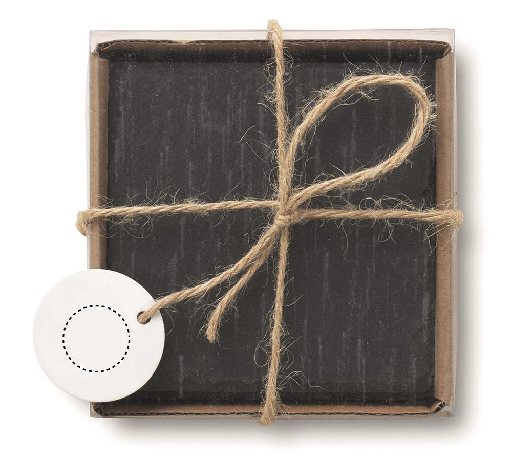 Набор из 4 костеров, выполненных из сланца. Дно из вспененного материала, что предотвращает скольжение.