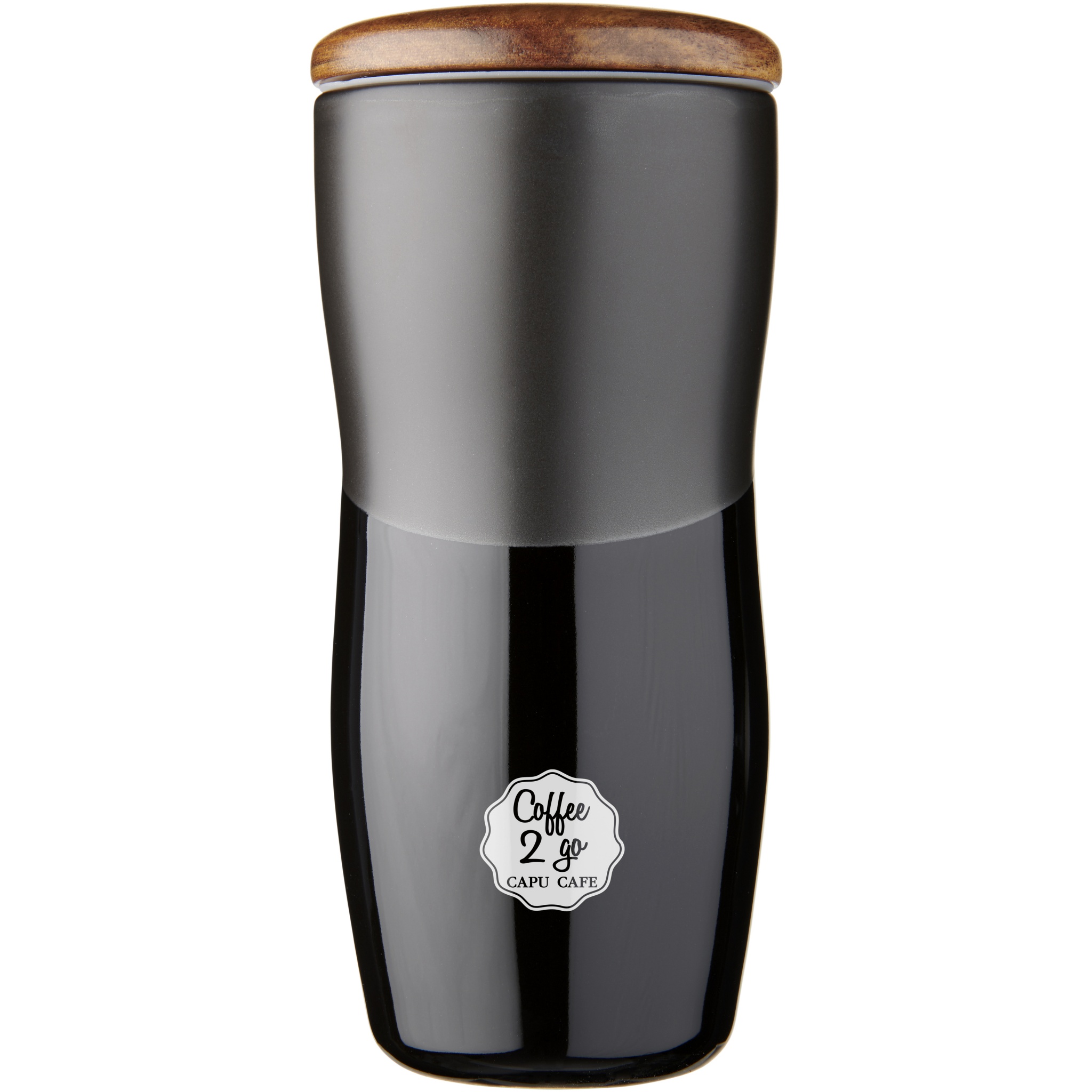 Двустенная керамическая термокружка с контрастным дизайном из матового и блестящего покрытия. Кроме того, двустенная керамическая конструкция препятствует образованию конденсата на внешней стороне стакана. Оснащена деревянной нажимной крышкой. Объем - 370 мл. Упакована в подарочной коробке Avenue.