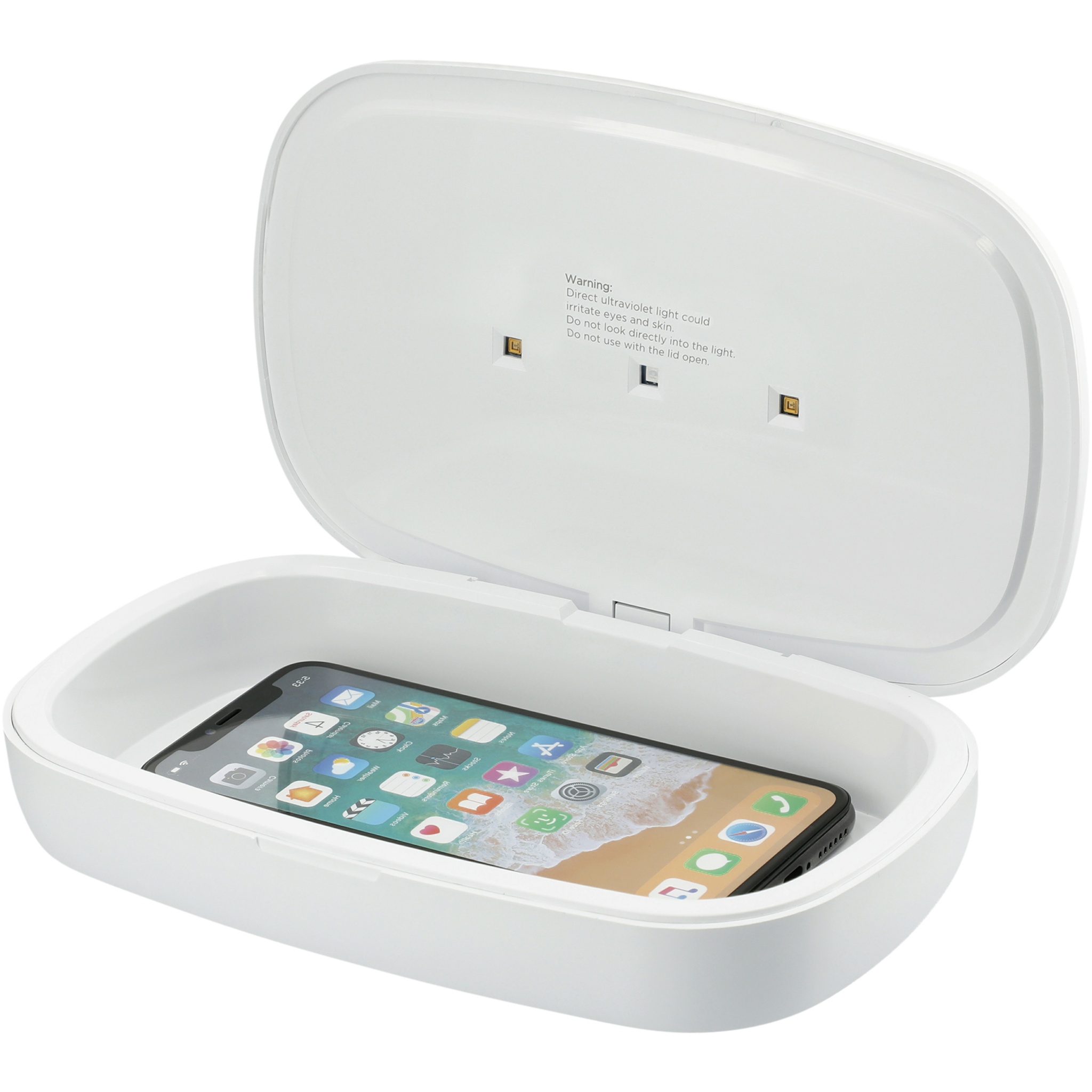 УФ-стерилизатор для смартфона Capsule с беспроводным зарядным устройством (5 Вт ) используется для зарядки и очистки смартфонов благодаря встроенным светодиодным лампам УФ-С. Предусмотрено 2 уровня стерилизации. Нажмите кнопку один раз, чтобы выполнить кратковременную санитарную обработку в течение 90 секунд. Нажмите кнопку дважды, чтобы выполнить глубокую санитарную обработку в течение 5-минут. Помимо смартфонов стерилизатор Capsule может дезинфицировать все, что помещается внутри коробки, например ключи, наушники и другие личные вещи. Доказано, что он уничтожает до 99,9% бактерий, таких как Escherichia coli, Staphylococcus и Candida albican. Для защиты пользователя от воздействия ультрафиолетовых лучей предусмотрена блокировка включения устройства при открытой крышке. Если открыть крышку во время обработки, устройство немедленно выключается, чтобы предотвратить воздействие на глаза/кожу. Упакован в подарочную коробку премиум-класса.
