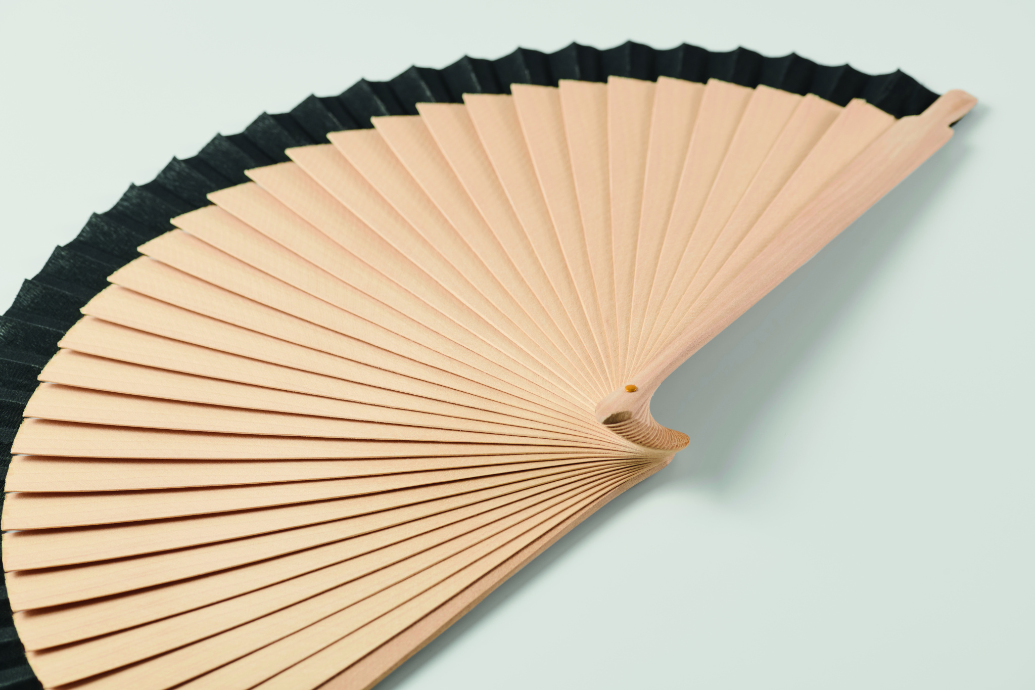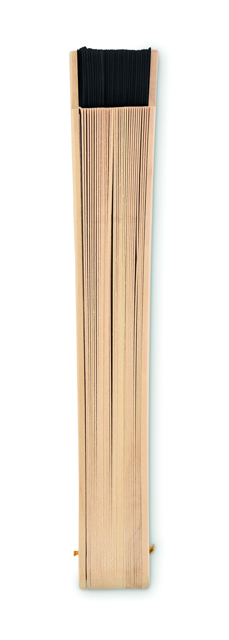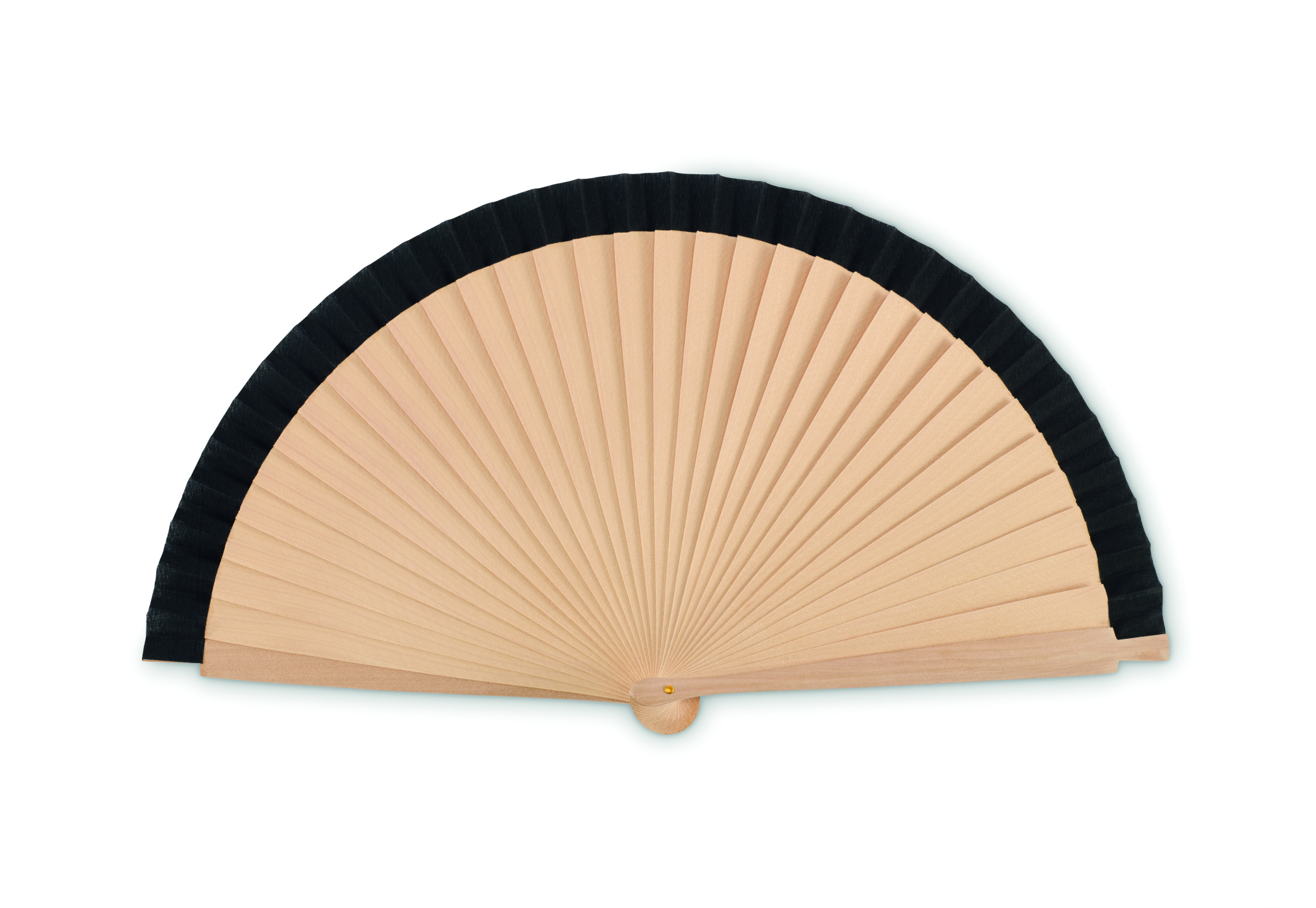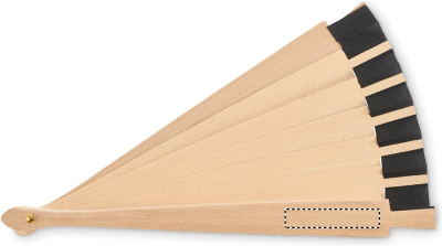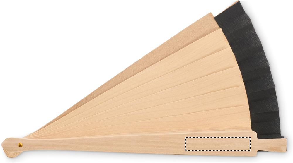 Wooden hand fan made of Schima Superba wood and polyester with 34 ribs. Elegant design.
