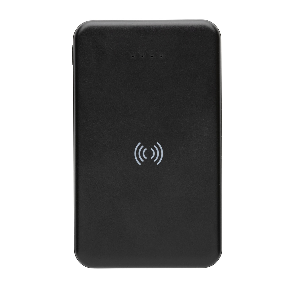 5.000 mAh powerbank i fickformat med 5W trådlös laddare där höljet är tillverkat av RCS-certifierad återvunnen ABS-plast. RCS (Recycled Claim Standard) är en standard för att verifiera det återvunna innehållet i en produkt genom hela leveranskedjan. Totalt återvunnet innehåll: 26 % baserat på den totala produktvikten. Med en fulladdad powerbank kan du ladda din mobil upp till två gånger. Powerbanken innehåller ett långvarigt 5.000 mAh litiumpolymerbatteri av klass A med hög densitet och lång livslängd. Strömindikatorerna visar den återstående energinivån så att du alltid vet när du ska ladda om. Micro USB-input 5V/2A; Type-C-input 5V/2,4A; USB-output 5V/2,4A, Type C-output: 5V/2A Produkt och tillbehör är PVC-fria. RCS-certifierad laddningskabel av återvunnen TPE medföljer. Förpackad i FSC®-mixförpackning.