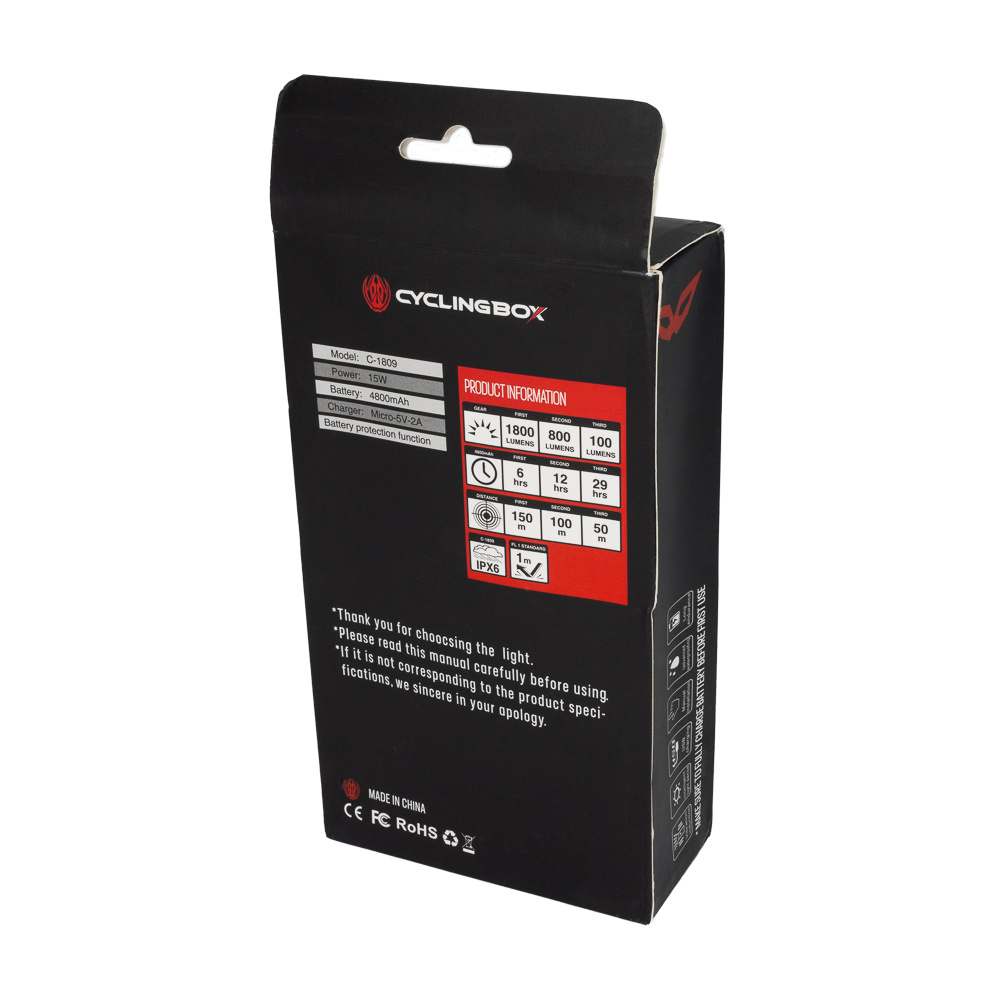 Denna moderna USB Type-C uppladdningsbara cykellampa kommer att ge dig utmärkt belysning under dina cykelturer, vilket ger dig en känsla av säkerhet även under nattliga resor. Med sitt högkapacitetsbatteri på 4800mAh säkerställer vår cykellampa långvarig och pålitlig prestanda. Batteriet kan enkelt leverera tillräckligt med ström för att lysa upp dig under en längre period utan att behöva laddas ofta.