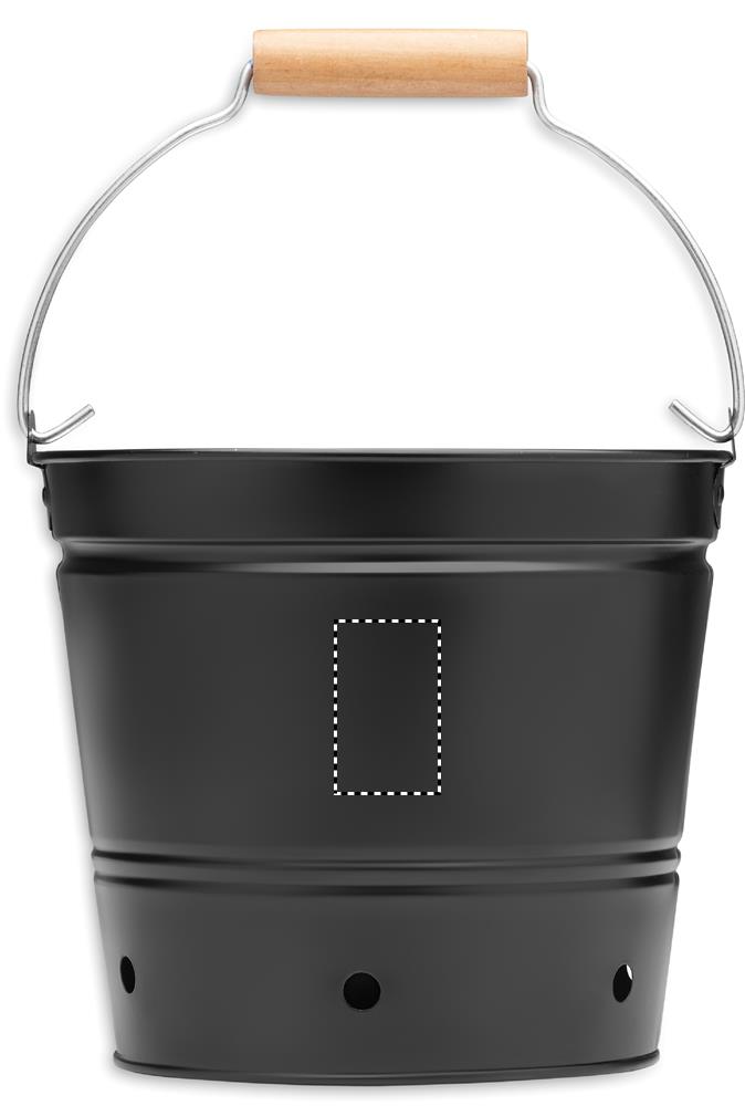Bärbar hinkgrill i järn med grill i rostfritt stål med trähandtag.