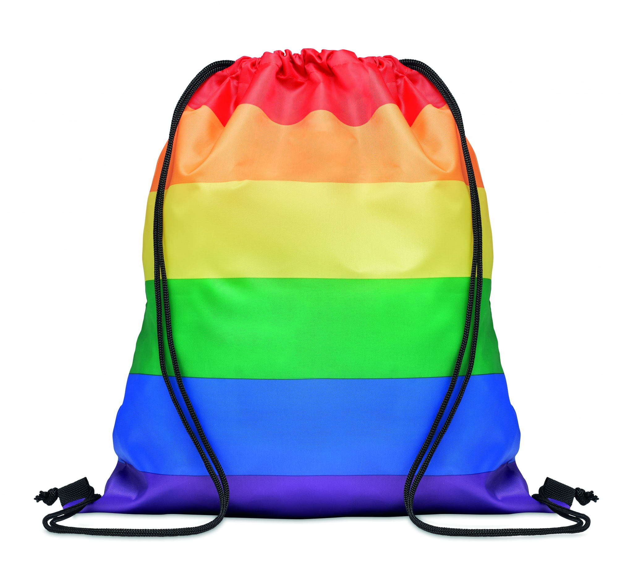 Regnbågsfärgad Pride Gymnastikpåse i 210D RPET polyester med PP-snören.