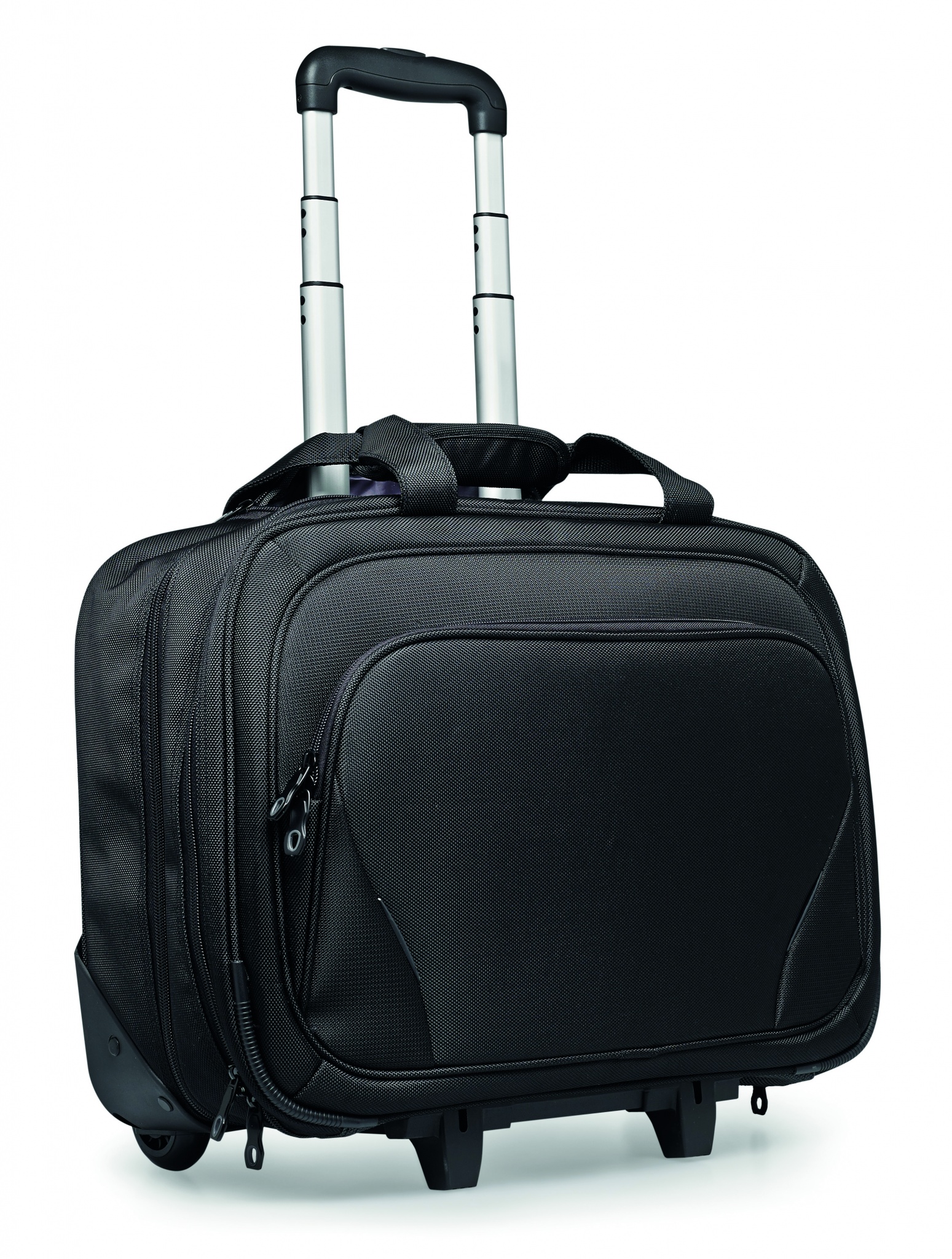 Businessväska / kabinväska med trolleyhandtag och hjul. Vadderade fack som rymmer en 17 tums dator och en 10 tums padda. Flera fack och fickor för smidig förvaring. Väskan är tillverkad i kraftig 1680D polyester.