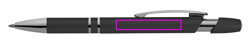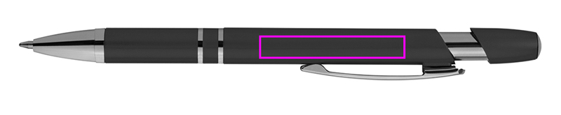 Metallisk kulpenna i plast med stor kapacitet påfyllning och tryckfunktion. Vi kommer att trycka din logotyp under klippet.