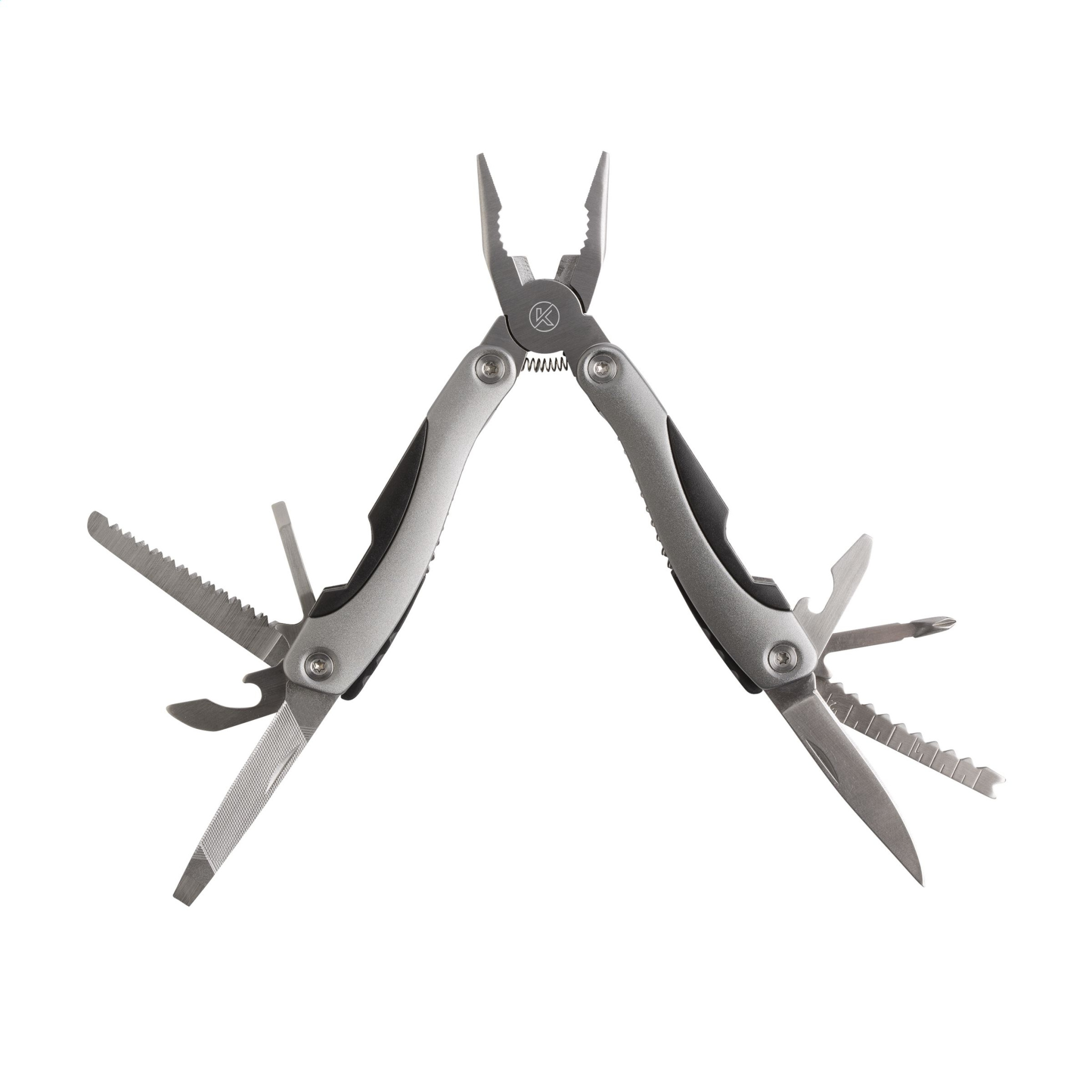 Funktionellt och komplett presentset: 9-delat multiverktyg i rostfritt stål med 12 funktioner (tång, trådavskiljare, såg, 2 skruvmejslar, konservöppnare, locklyftare, fil, kniv, stjärnskruvmejsel, fiskskrapa, krokborttagningsverktyg) och aluminiumhandtag och metalliskt utseende. Ficklampa i aluminium (Ø 2,7 x 9 cm) med 9 ljusa vita energieffektiva LED-lampor och avtagbar slinga. batterier inkl. Varje set i kartong. Observera att lokala regler kan gälla angående innehav och/eller bärande av knivar eller multiverktyg offentligt. Artiklar levereras som ett set med, varje set individuellt förpackad.