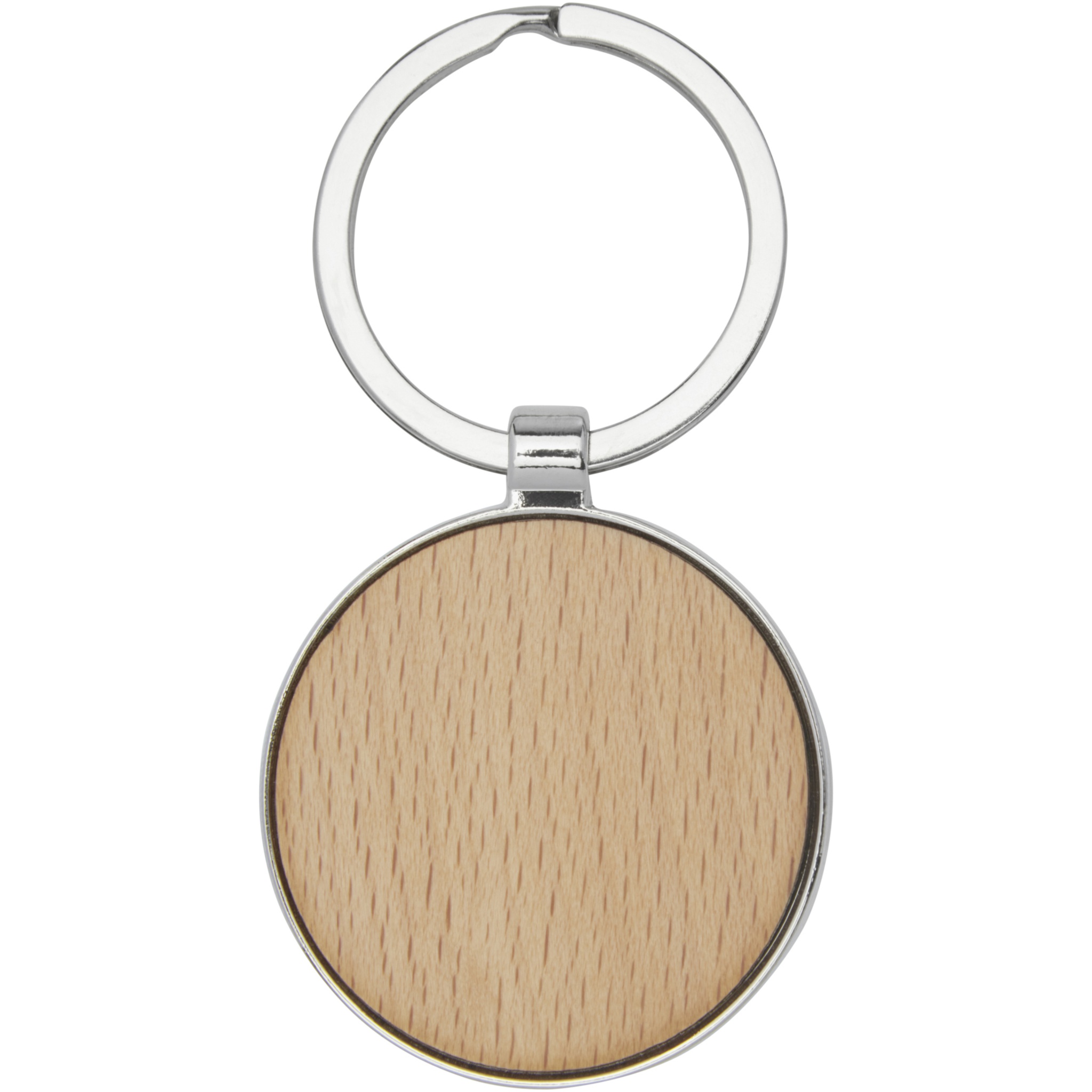 Rund nyckelring i premiumkvalitét gjord av bokträ med metallhölje i zinklegering, levereras i ett brunt återvunnet Kraft-handgjort kuvert.. Nyckelringens diameter är 4 cm. Gjord för lasergravyr.