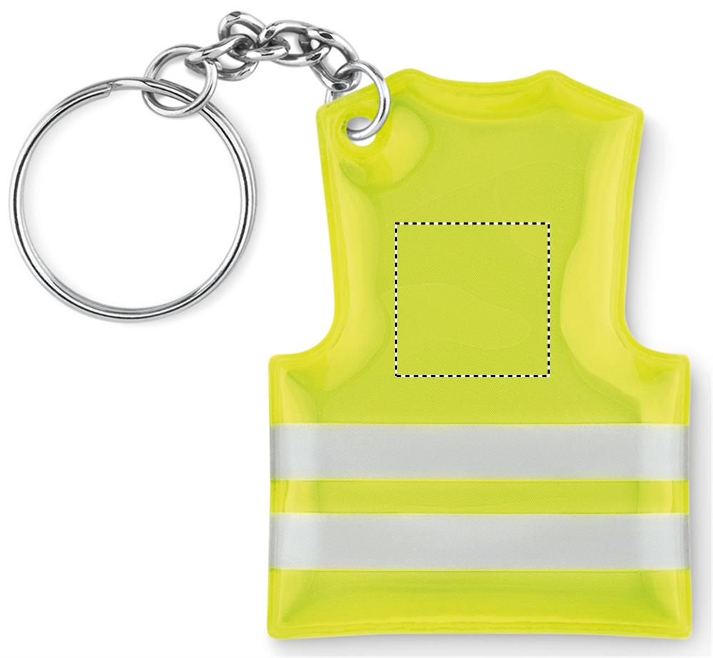 Nyckelring i form av en reflexväst i reflekterande PVC.