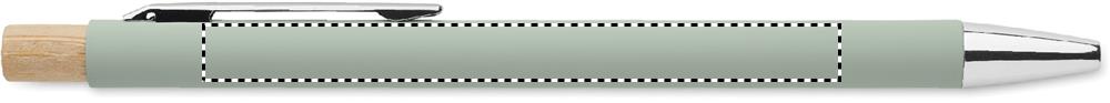 Penna i återvunnet aluminium med tryckknapp i bambu. Silverfärgad spets och klips. Blått bläck.