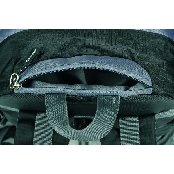 Kvalitet och lätt ryggsäck med vadderade axelband och ryggsystem, midjebälte för en bekväm bäring, kompressionsremmar på sidorna av väskan, meshfickor för flaskor på båda sidor, öglor för stavar och isyxor, två nödfickor, framficka med spänne, mittfack med dragkedja med fack för småsaker och dragkedja för värdesaker och mycket rymligt huvudfack med separat ficka. Ryggsäcken innehåller orange säkerhetsvisselpipa. Material: polyester 420D polyester med pvc-baksida+210D ripstop med pubacking+210D polyesterfoder. Kapacitet: 31 l.
