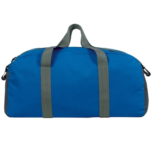 Stor sportväska i 600D polyester med stort innerfack, bärhandtag och justerbar axelrem. Vi trycker din logotyp på ena sidan.