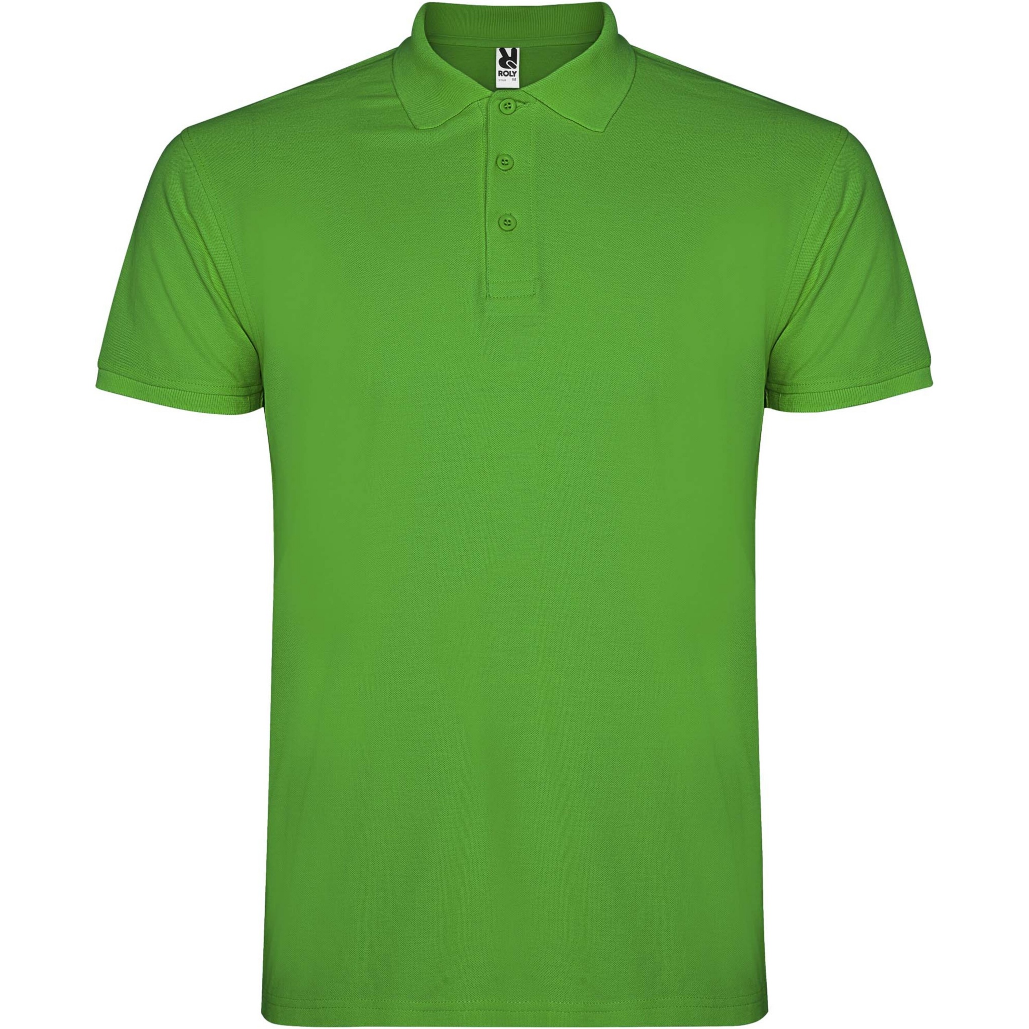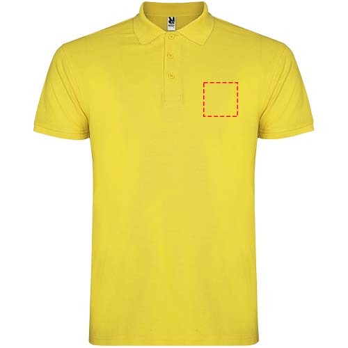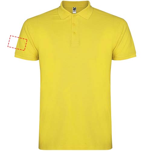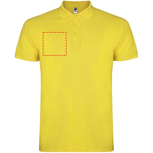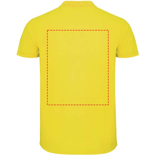 Kortärmad pikétröja för herr. Förstärkta dolda sömmar på insidan av kragen. 1x1 ribbade muddar och krage. Sidsömmar. Knappslå med 3 knappar och sidslitsar. Borttagbar etikett. Modellen är 185 cm och bär storlek L.