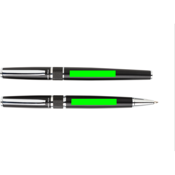 Skriv elegant och med stil med detta lyxiga penn-set. Setet består av en kulspetspenna och en rollerball-penna som levereras i en presentförpackning. Kulspetspennan har Dokumental-bläck och TC-kula för smidig skrivkänsla. Rollerball-pennan har blått Dokumental-bläck. Båda pennorna har ca 1200m skrift.