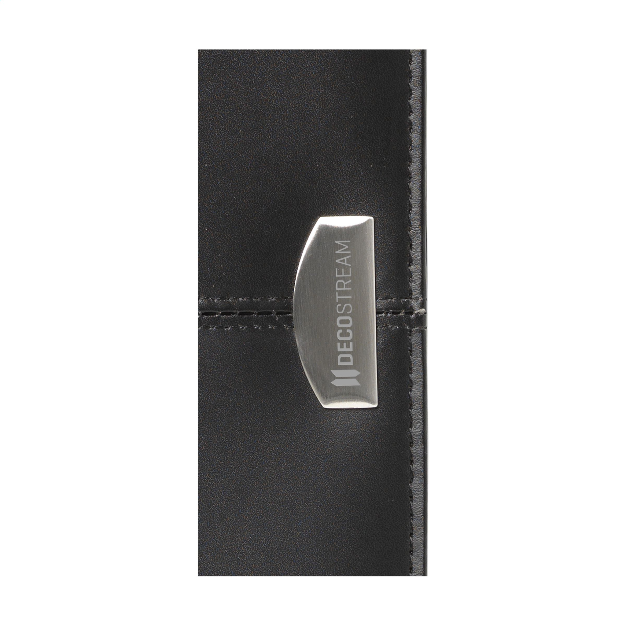 Konferens-/dokumentmapp tillverkad av fint, bonded läder i A4-format. Med flera fickor, fack för visitkort och dragkedja. Inkl. skrivblock och kulspetspenna. Varje föremål är individuellt förpackat.