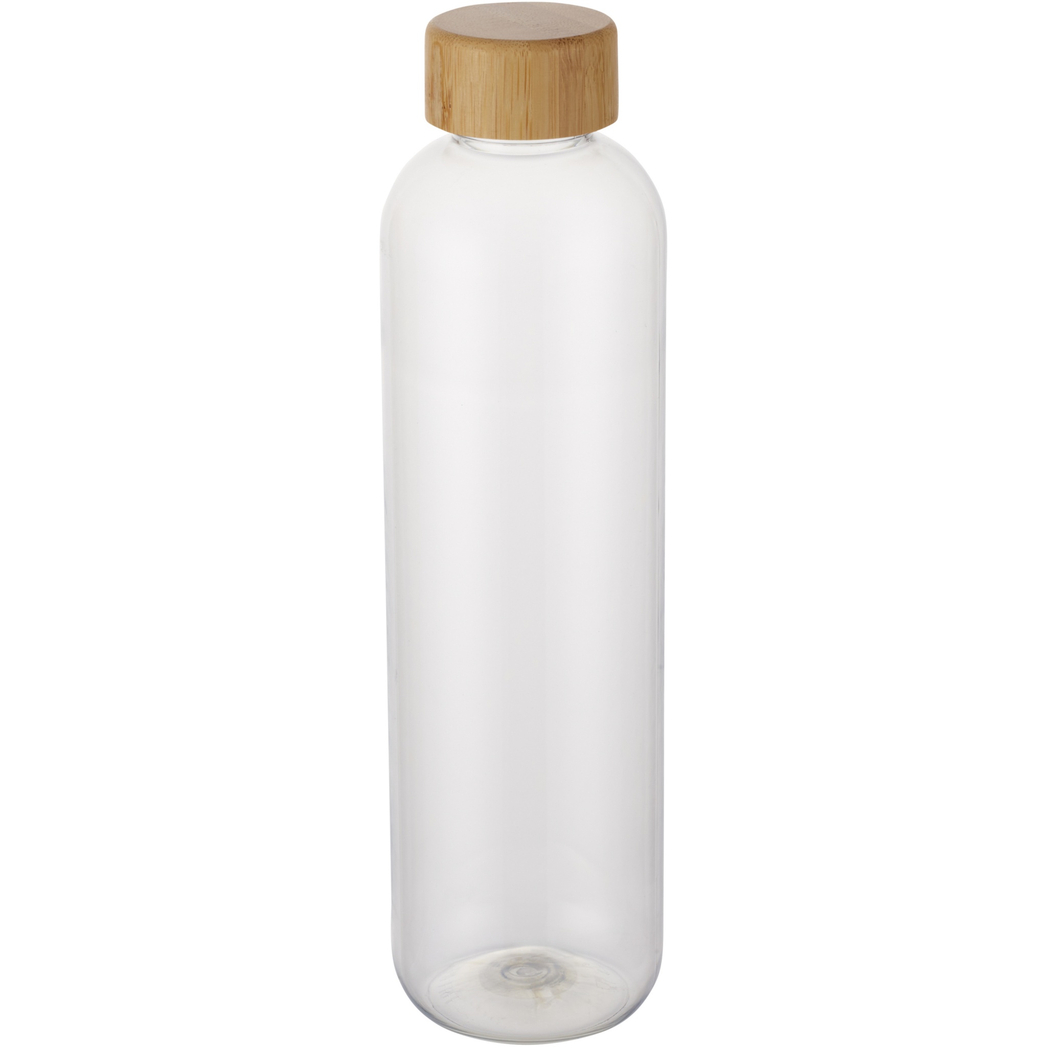 Vattenflaska tillverkad av återvunnen plast, med ett snyggt lock av bambu. Flaskan har enkelvägg, är BPA-fri, testad och godkänd enligt tysk lagstiftning om livsmedelssäkerhet (LFGB). Testad och godkänd för ftalat-innehåll enligt REACH-förordningen. Bambun kommer från hållbara, miljömässigt och socialt ansvarsfulla källor. Volymkapacitet 950 ml. Handdisk rekommenderas. Levereras i en presentförpackning av återvunnen kartong.